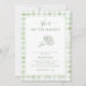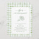 Inbjudan är dina gäster till ett charmerande firande med detta Inbjudningskort för möhippan, perfekt för ett tema "Hennes färd av marknaden". Med handdragen blommigt och gingham vattencolor inslag i mjuka gröntar blandas den här utformningen med en modern, jordbruksininspirerad estetik. Om ni behöver hjälp eller är intresserade av att samordna produktdesignen skulle jag vara lycklig som skulle hjälpa till!