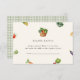 Gör din babydusch både praktisk och charmig med vårt "Diaper Raffle"-kort! Designat för att komplettera en bondemarknad där babydusch odlas lokalt uppmuntrar detta kort gästerna att ta med sig en blöjförpackning för att få en chans att vinna ett roligt pris. Med rytm, boho-illustrationer av färska produkter och grönt, tillsammans med en ginghambakgrund, binder det sömlöst in i ditt ekologiska, land-inspirerade firande. Den här tankeväckande beröringen lägger inte bara till en lagrar i stollig till ert evenemang utan hjälper också till att förbereda baby för att komma in med en massa viktiga saker. Koppla ihop det med våra samordnande utformningar för en komplett uppsättning!