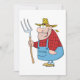 En jordbrukare i dungareer som bär en gaffel. Den här designen ser ut att vara verkligen vid den här inbjudan