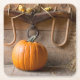 Jordbrukarmuseet. Pumpkin i ladugård med bala av h Underlägg Papper Kvadrat