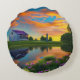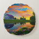 Jordbrukshus Lila Tak Pond vid Soluppgång Rund Kudde