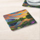 Jordbrukshus Lila Tak Pond vid Soluppgång Underlägg Papper Kvadrat