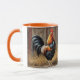 Den här fantastiska tupp står stolt över en fullt av gamla barnkarmar. Dess rik, ihärdiga fjädrar från att krypa , orangar och slående blues fångar det väsentliga i lantgårdsvården. Det här är perfekt för land decor älskare, hemmakonatorer eller någon som uppskattar landsbygdslivets tidlösa elegans.