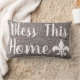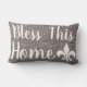 Djupt brunt kaffe och vit spetsig örrbenskamrat bakgrund. Centrumet har vit text som säger "Bless This Home" med en vit loppur de lis. Både fram och tillbaka är desamma.