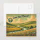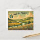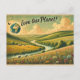 Här är ett vykort vintage-stil för Lycklig Earth Day, med en scen på landsbygden med rullande grönt backe, färglöst vildblomma fält och en rullningsflod. 🌿 🌎 Utformningen har blekt, sol blekt färg med varma sepiatoner och retrotypografi, skapande ett charmigt, nostalgiskt känsel