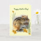 Detta mors dagkort presenterar en gullig lite jordekorre som stoppar hans knubbiga kinder som fastar, som han kan på en vårdag. Han har en svartvit rand att besegra hans baksida, vit runt om ögonen, guld- brun päls och en rosa näsa. Nötkreatur för sötsaken omges lite av grönt gräs och gula liljar. Han verkar också inre kortet tillsammans med mer liljar. Texten kan skräddarsy för att passa dina behov.