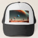 Bild är planeten Mars med planeten Jorden, måne och Jupiter i futuristiskans fantastiska konstdesign