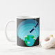 En ren och lugn muggdesign med jorden med skiktade atmosfäriska band och en satellit i omloppsbana. Perfekt för att lägga till en subtil vetenskaplig touch till din dagliga rutin.