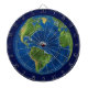 Jordglob och fartyg på blå darttavla