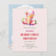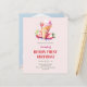 Jordgubbar och glass till en Jordgubbs Första Födelsedagsfest. Anpassa och lägg till din festinformation. Ljus rosa bakgrund.