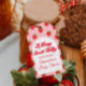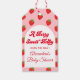 Jordgubb present till babyfesten presentetikett