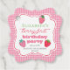 Söta jordgubbsflickans "Berry First Födelsedagsfest"-utformning med en ram inom parentes med jordgubbar som accentuerar framsidan och en baksida som kontrolleras mönster vid rosa av bär. Sammansatt design efter Helgdag Hearts-design.