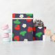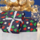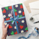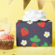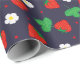 Blå presentfigursättning med ett sött mönster av jordgubbar, blommor och löv