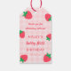 Jordgubbarnas Rosa Cute Berry Första födelsedag Ba Presentetikett