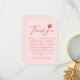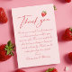 Fira med ett personligt tackkort för jordgubbbröllopsfest, perfekt för ett jordgubbbröllopstema. Omfamna charmen hos vårbröllopsfest med förtjusande bärteman. Detta kort passar vackert med ett "love is berry sweet" bröllopstema, "berry in love" bröllopstema eller "berry sweet" bröllopstema. Perfekt för alla jordgubbbröllopsfestidéer, det är ett sött tillägg till jordgubbsteman för bröllopsfestidéer.