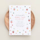 Vänner och familj i inbjudan för att fira din lilla speciella dag med den här vackra jordgubbsinbjudan, med illustrerade bär och konetti.