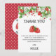 Det här platta tack-kortet är ett plåster av jordgubbar, vita blommor och grönska samt ett par jordgubbar och ett jordgubbsfrö på baksidan. Perfekt att tacka gästerna för att de närvarade vid firandet av din bästgåva, småbarn. Anpassa med egen information. Matchande och alternativa objekt finns i samlingen här: https://www.zazzle.com/collections/berry_sweet_strawberries_collection-119410870161708448?rf=238422957014002417