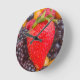 Väggklocka med bild ett rött jordgubbe ljugande på en blandning av andra bär. Anpassade.