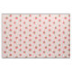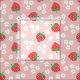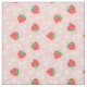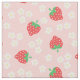 Rosa tyg med ett mönster av jordgubben blommar omgeende jordgubbar.