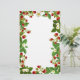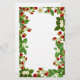 Original- konstdesign av jordgubbeväxter, frukt och blommor av den botaniska illustratören Carolyn McFann av studion för två spinnakatter på kvalitets- brevpapper.
