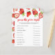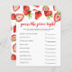 Mattebabyduschen "pris är höger" med vattenfärgstryck för den röda frukten. Texterna kan redigeras. Perfekt att spela under duschen. Den räknar upp det viktigaste baby och ber gästerna att gissa det prisa. Den som gissar prisa vinner närmast!