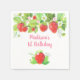 Den här söta födelsedagslöjan har vattenfärgsjordgubbar, grönenergi och blommigtar.