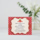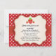 Denna söta inbjudan för bär presenterar röd och vitpolka dotsbakgrund. Ett rött band och en toppen gullig vintageetikett. Illustrerat med tre söta jordgubbar.