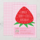 Jordgubbs Sommarflicka Bär Första Födelsedagsfest Inbjudningar