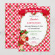 Jordgubbs tema babyflicka Gingham röd grön Inbjudningar