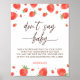 Jordgubbsbabyskor Säg inte Baby-spelskylt Poster
