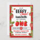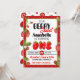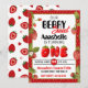 Tema för akut jordgubbe först födelsedagsfest inbjudan, redigera texten själv när du beställer den