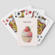 Spelkort med en illustration som ger dig en fin tittar kaka. Vit grädde och en stor jordgubbsbär adlar den här söta smaken.