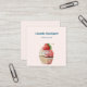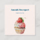 Fyrkantigt affärskort med en illustration som visar en utsökt tittar kaka. Vit grädde och en stor jordgubbsbär adlar den här söta smaken.
