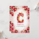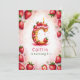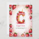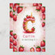 Fira en speciell födelsedag med den vackra inbjudan till jordgubbstårta brev C-tårta! Den här charmerande vattenfärgen har en roligt och en fin kaka som är formad som "C" i brev, dekorerad med färska jordgubbar, rosa isbildning och ett glödande födelsedagsljus. Den mjuka bakgrunden till rosan med spridda jordgubbar ger en lekfull beröring. Anpassa med ditt barns namn, ålder och party för ett jordgubbsfirande med ett enda slag. Perfekt för barn som frukttemade party eller sommarfödelsedagar i kärlek!