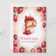 Fira en speciell födelsedag med den vackra inbjudan till jordgubbstårta brev "P"-tårtan! Den här charmerande vattenfärgen har en roligt och en fin kaka som formas som brev P-dekorerad med färska jordgubbar, rosa isbildning och ett glödande födelsedagsljus. Den mjuka bakgrunden till rosan med spridda jordgubbar ger en lekfull beröring. Anpassa med ditt barns namn, ålder och party för ett jordgubbsfirande med ett enda slag. Perfekt för barn som frukttemade party eller sommarfödelsedagar i kärlek!