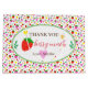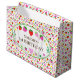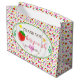 Den här söta, färglösa presentsäcken med födelsedagsfest har små röda och rosa jordgubbar och röda, rosa, gult och grönt kärlek hjärtan. På framsidan står "Sandie första födelsedag" i brunt skript och "Tack" och "bär mycket" i kalligrafiskript längst bak. Du kan anpassa ditt namn och din födelsedag. Bakgrunden är jordgubben och kärlek hjärtat mönster.
