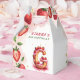 Gör party favors extra speciell med den här vackra packlådan som innehåller en jordgubbskård med brev "G"-tårtutformning! Vattenfärgsillustrationen visar en kakaformad "G" i brev som är fylld med färska jordgubbar, rosa frosting och ett födelsedagsljus, inramad av en elegant jordgubbsbär i gräns. Perfekt för att fylla med maträtter, små presenter eller behandlingar för gästerna. Ett sött och festligt tillägg till en jordgubbsfödelsedagsfest!