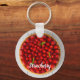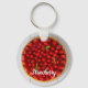 Jordgubbskaka med mynta på vitt trä nyckelring