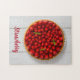 Jordgubbskaka med mynta på vitt trä pussel