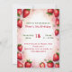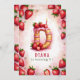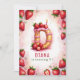 Gör ditt barns födelsedag extra ljuvlig med den här vackra jordgubbsinbjudan! Med en utsökt brev "D"-kaka som dekorerats med juiktjordgubbar, rosa icing och ett framljusljus är denna charmerande vattenfärgskonstruktion perfekt för barn vars namn börjar med "D". Bakgrunden visar en mjuk vattenfärgseffekt i rosa, framtagen av vibrerande jordgubbar och känsliga blommar. Anpassa den med ditt barns namn, ålder och party-detaljer för ett unikt födelsedagsfirande och en roligt! Perfekt för jordgubbsteman, fruktteman eller sommarfödelsedagar.