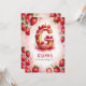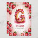 Gör ditt barns födelsedag extra ljuvlig med den här vackra jordgubbsinbjudan! Med en utsökt brev "G"-kaka som dekorerats med juiktjordgubbar, rosa icing och ett framljusljus är denna charmerande vattenfärgskonstruktion perfekt för barn vars namn börjar med "G". Bakgrunden visar en mjuk vattenfärgseffekt i rosa, framtagen av vibrerande jordgubbar och känsliga blommar. Anpassa den med ditt barns namn, ålder och party-detaljer för ett unikt födelsedagsfirande och en roligt! Perfekt för jordgubbsteman, fruktteman eller sommarfödelsedagar.