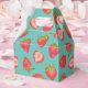 Jordgubbsmönstrad presentlåda på grön bakgrund, perfekt för födelsedagsfester, bröllop och andra firanden. Matchande artiklar finns tillgängliga. Originalkonst från konstnärens egna illustrationer. Vänligen använd knappen 'skicka meddelande' nedan för hjälp med ytterligare anpassning och specialförfrågningar. © Zoe Chapman Design