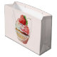 Presentpåse med en läcker illustration med en aptitlig muffins. Vit grädde och en stor jordgubbe pryder denna läckra söta godsak.