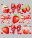 En söt och vibrerande samling jordgubbar, röda ginghamströnor, hjärtikoner, jordgubbsdruvor sylt och en fräschande jordgubbsdryck, allt mot en svart bakgrund. Den här designen är söt, mysigt och summeristisk med en charmig, land-inspirerad twist.
