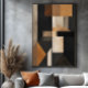 Förhöj din inredning med denna abstrakta konst som förenar svart stabilitet med värmen från jordnära och gyllene toner. Åldrande texturer och geometriska former skapar ett sofistikerat verk, perfekt för moderna miljöer som söker djup och tidlös elegans.