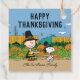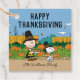Lägg till den här roligten Peanuts-Thanksgiving-förmånstaggen till ett kontrakt på helgdag bord.
