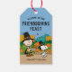 Lägg till den här roligten Peanuts-Thanksgiving-förmånstaggen till ett kontrakt på helgdag bord.