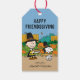 Lägg till den här roligten Peanuts-Thanksgiving-förmånstaggen till ett kontrakt på helgdag bord.