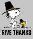 Fira Thanksgivingen och kärleken av jordnötter med den här toppen söta designen med Snoopy och Woodstock klädd som Pilgrims.