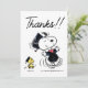 Visa din uppskattning i Peanuts stil med peanuts Snoopy & Woodstock Studenten tackkort! Med Snoopy and Woodstock som firar den stora dagen är det här trevliga kortet perfekt för att skicka tack efter ett peanuts-temat studenten-evenemang. Anpassa det med ditt budskap för att göra det speciellt i extra och låt Snoopy glädja dina tacknotor!